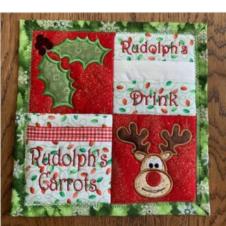 Price range: $20.00 through $25.00Make Santa and Rudolph snacks EXTRA-special on Christmas Eve with these fantastic and fun mats! Santa gets milk & cookies and Rudolph gets carrots & wine! Design by Sweet Pea Embroidery. Fabric is 100% pre-washed cotton.